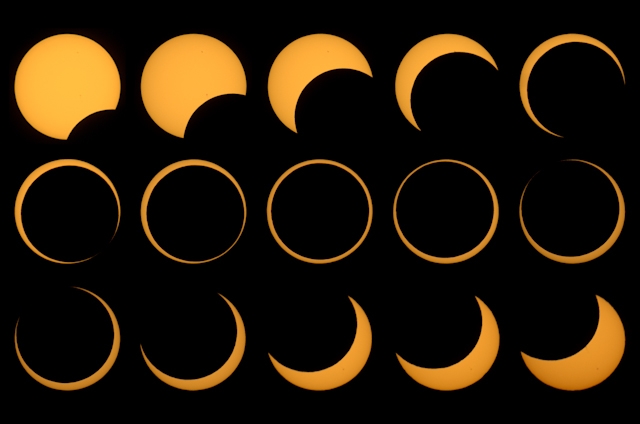 Eclipse sequence from 2 hours west of Albuquerque - courtesy of Patrick St Onge