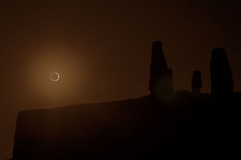 A composite image of the Annular Eclipse and the Three Sisters in Monument Valley. - courtesy of Robert Stephens
