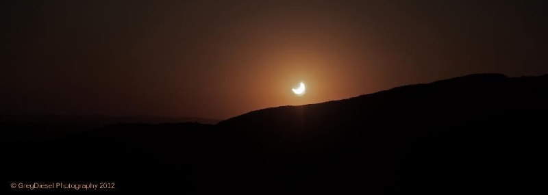 Setting partial eclipse in the Sandia Mountains of Albuquerque New Mexico. facebook: GregDieselPhotography - courtesy of Greg Diesel Walck